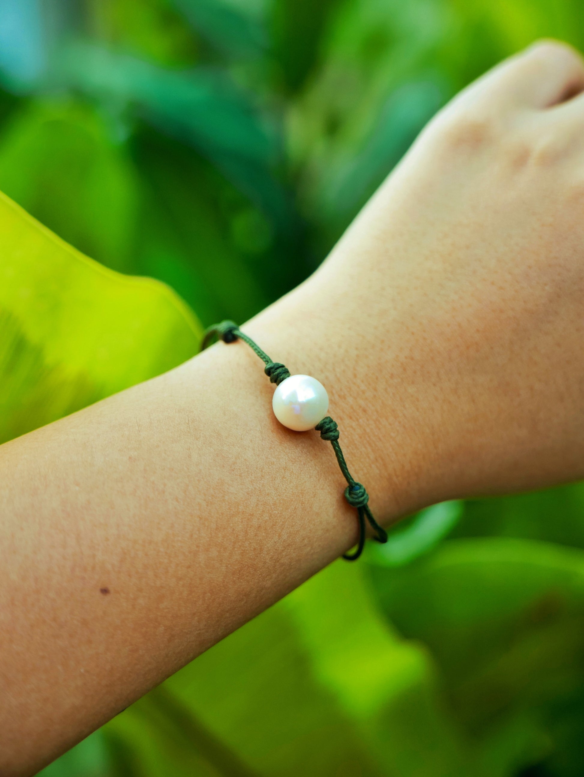 The Luna Bracelet fits 13 cm to 20 cm wrists and the freshwater pearl's size is 8 mm to 10 mm.