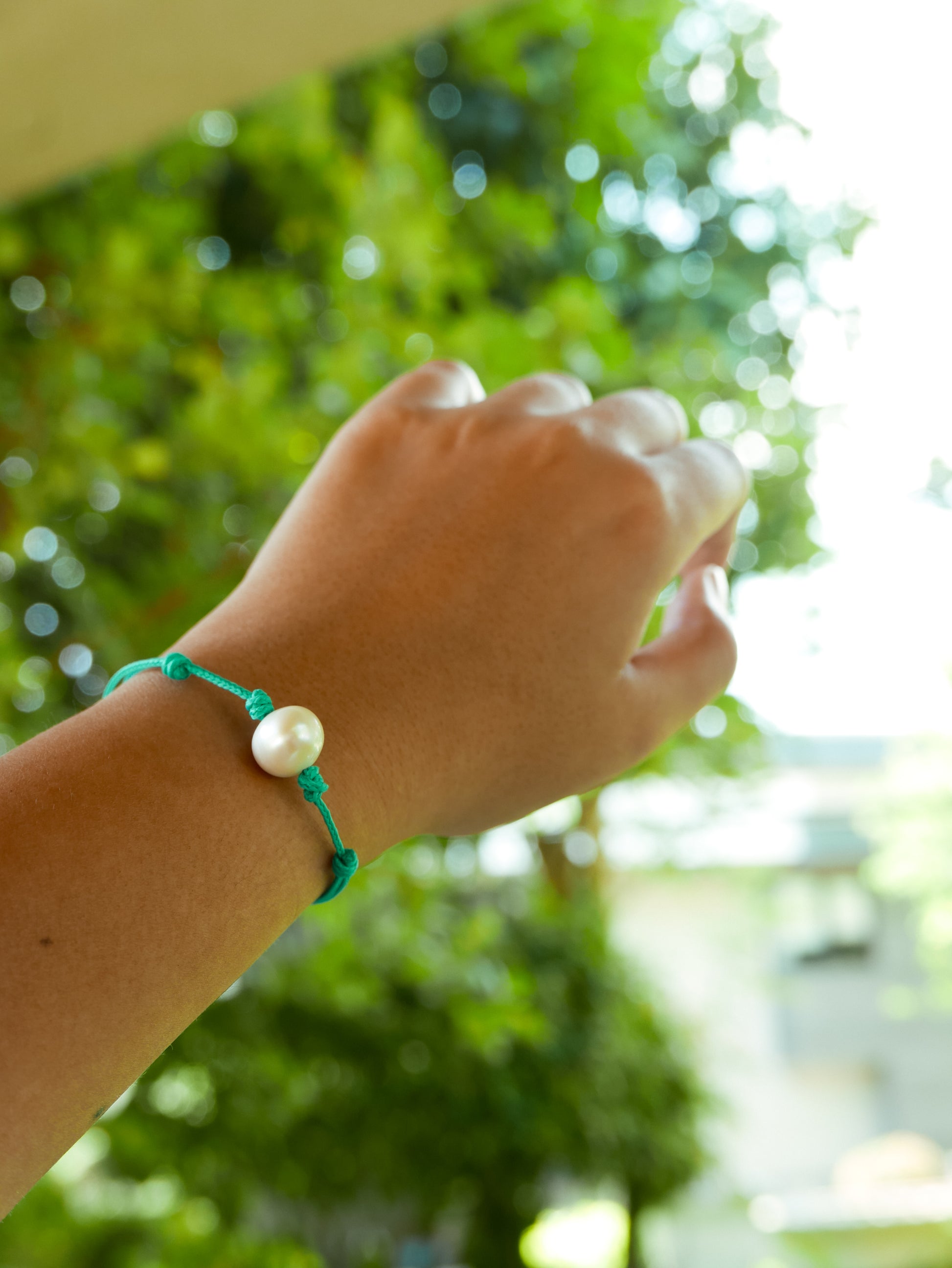 The Luna Bracelet fits 13 cm to 20 cm wrists and the freshwater pearl's size is 8 mm to 10 mm.