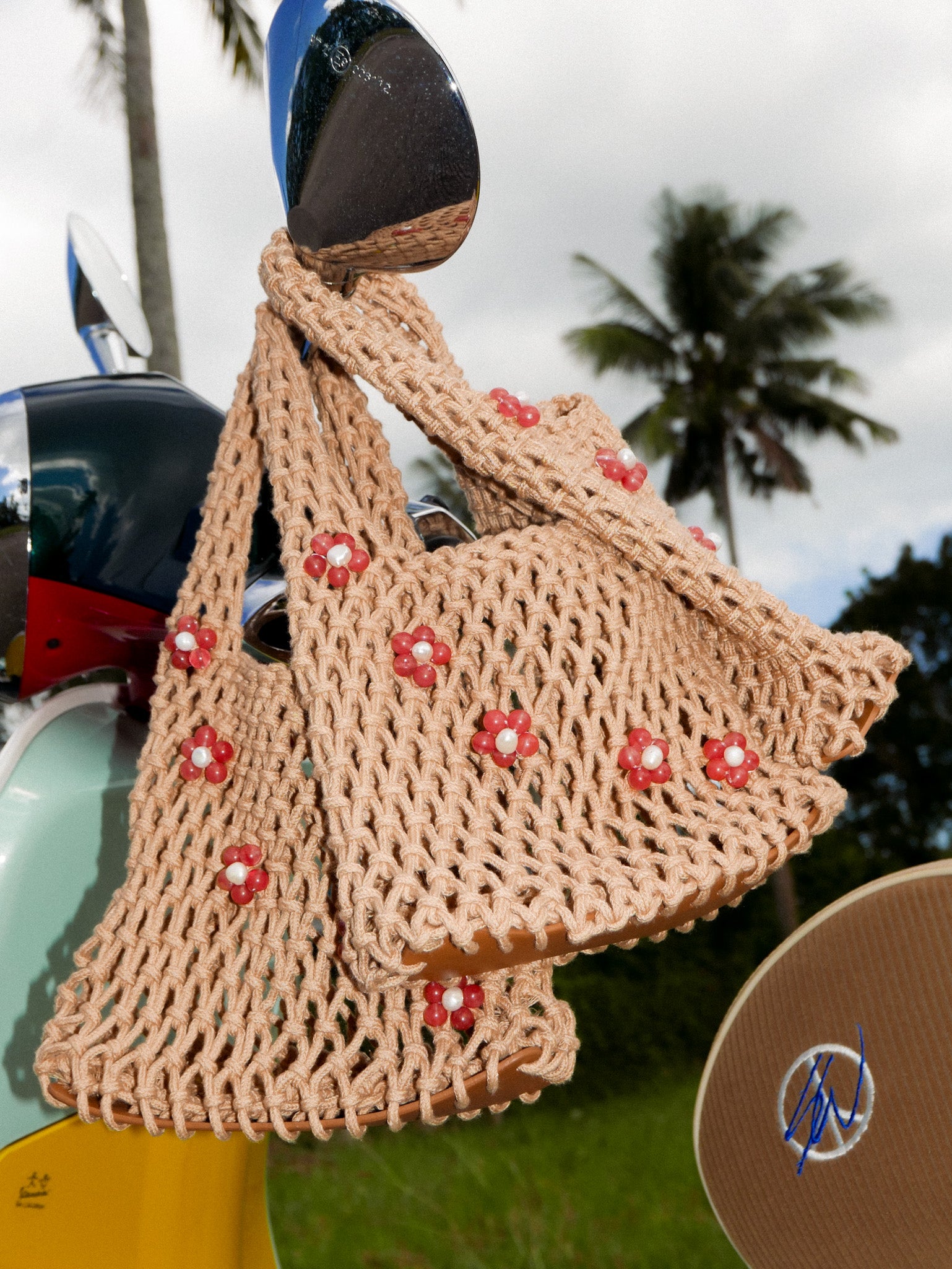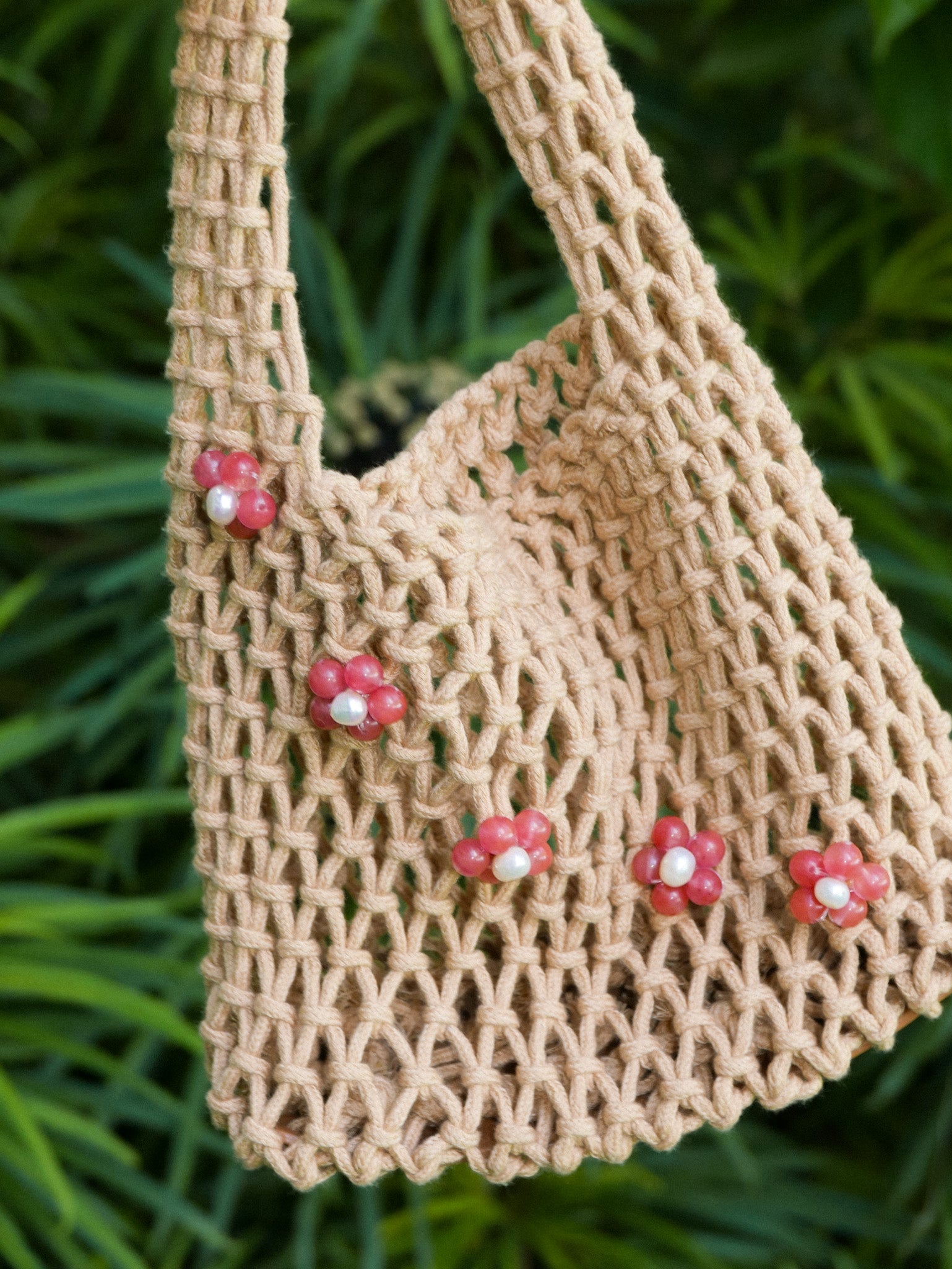 A tan brown purse that's perfect to carry around from casual brunches to weddings, this one lives and breathes versatility. The Manileña Mini is embellished with carefully hand-sewn fresh water pearls and quality cherry quartz.