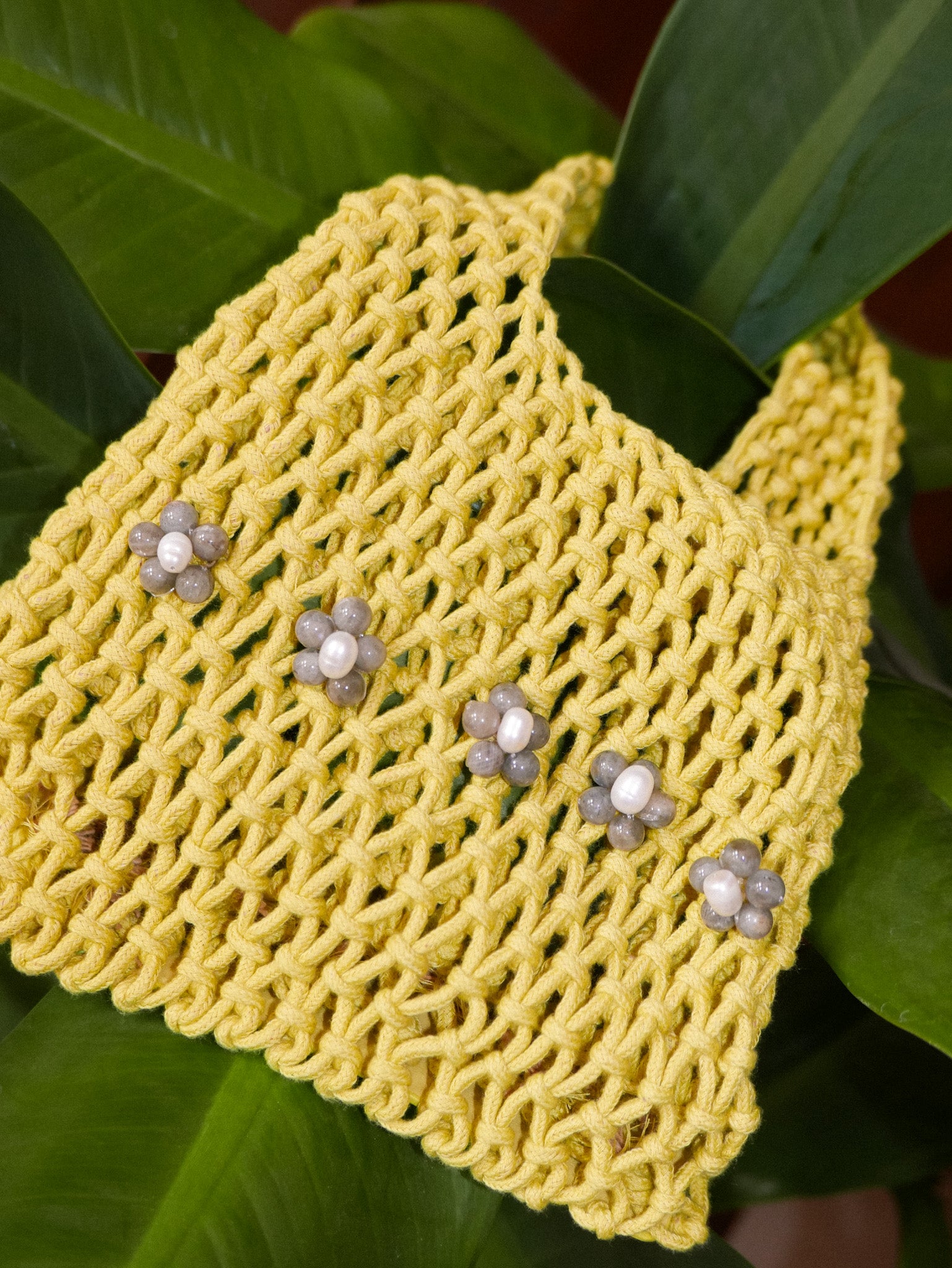 A fun purse that's perfect to carry around from casual brunches to weddings. The Manileña Mini is embellished with carefully hand-sewn fresh water pearls and quality labradorite.