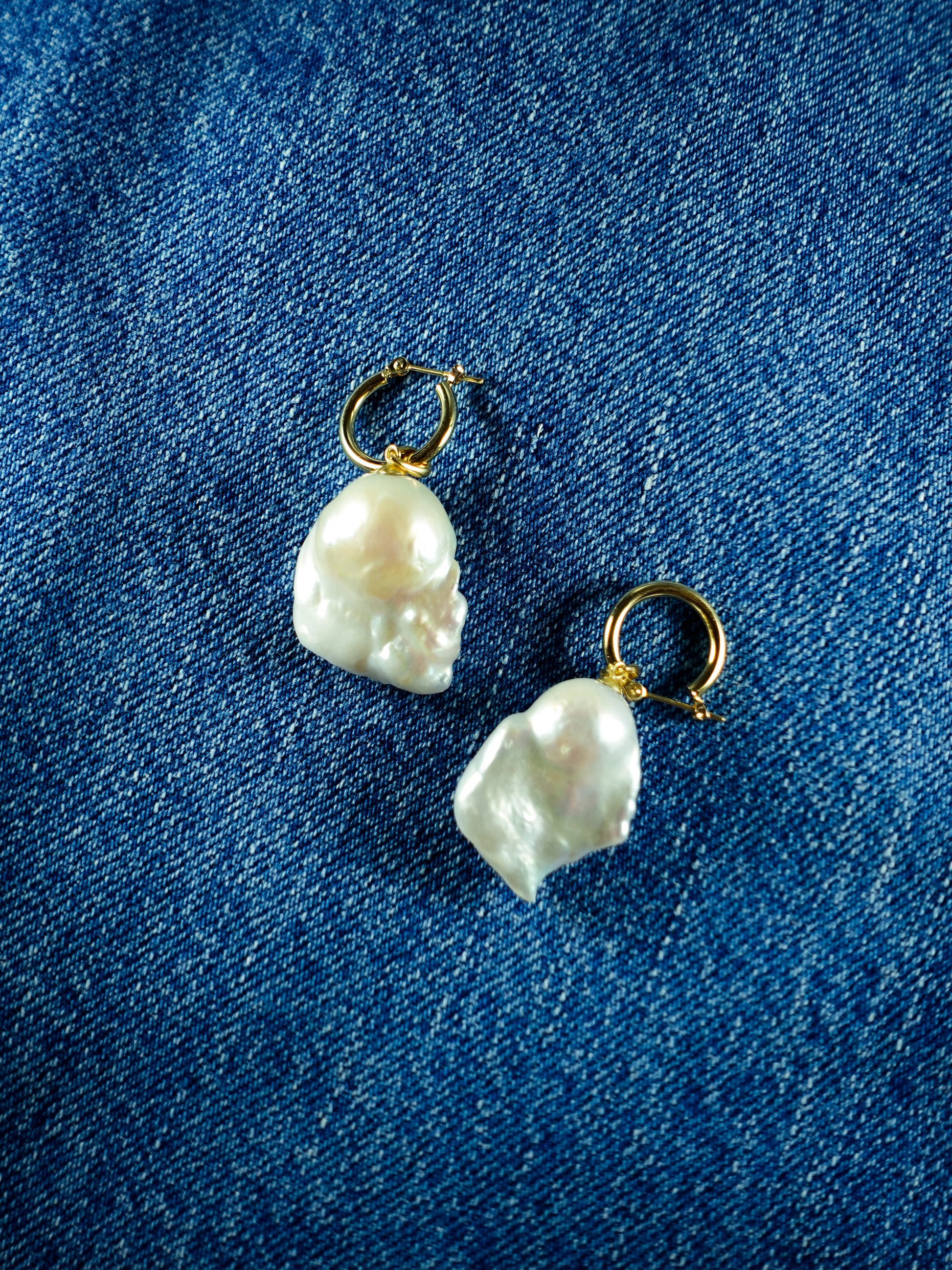 The Azuli earrings are the perfect pair to start your fine jewelry collection. You get classic hoop earrings in 18K gold and two removable baroque pearls, likewise set in 18K gold. Both baroque pearls can be worn as necklace pendants.